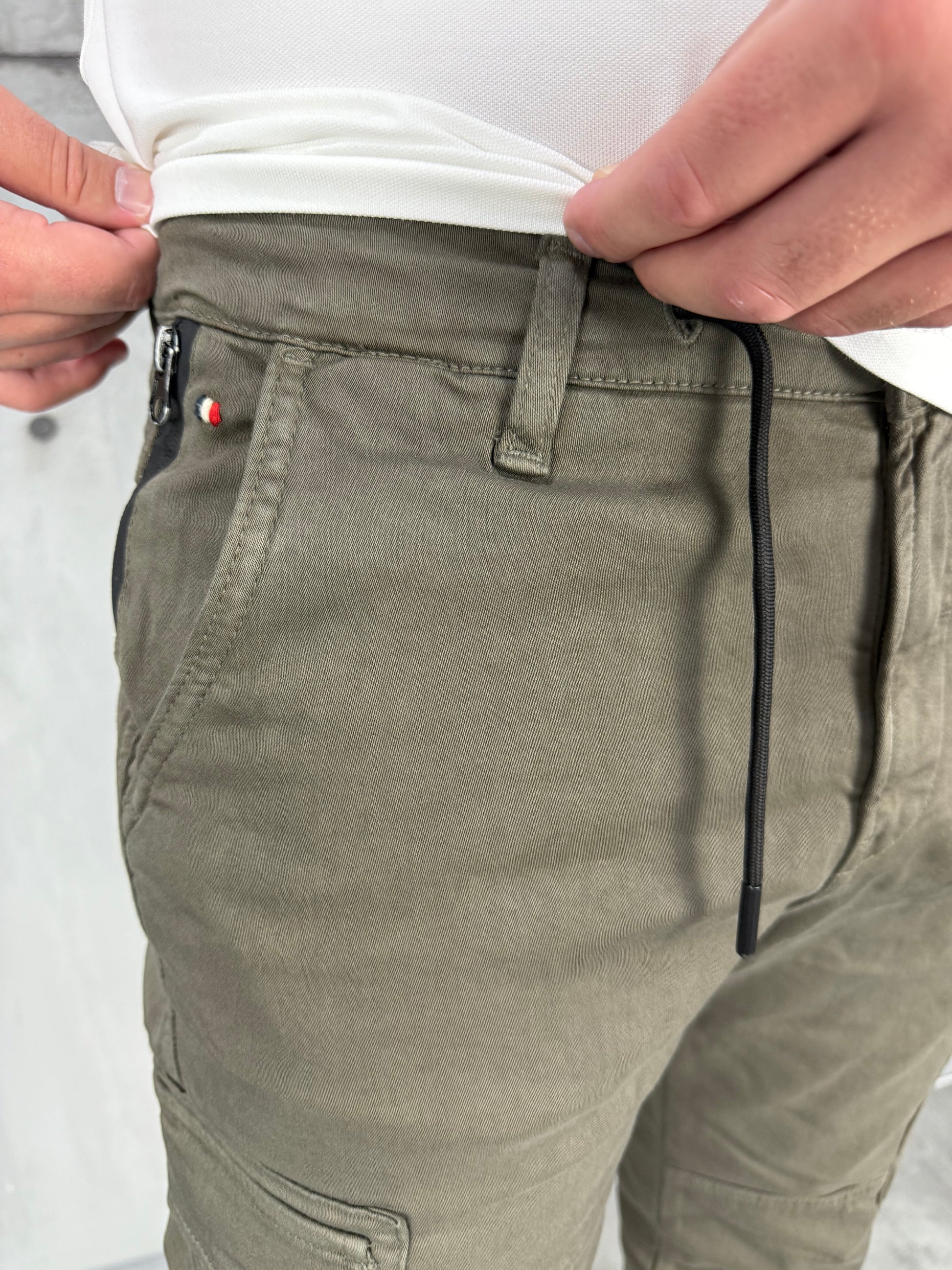 Made of twill with elastane where we made the ratio 98% premium harder twill and 2% elastane to maintain comfort and flexibility, with elastic in the waistband with a render. On each model of our cargo pants we used the most modern and highest quality materials and in the smallest details. YKK zippers and non-shrink material compositions.