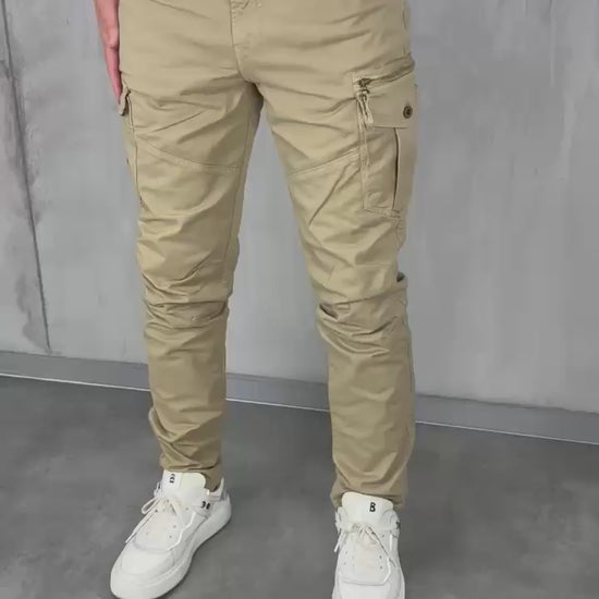 Made of twill with elastane where we made the ratio 98% premium harder twill and 2% elastane to maintain comfort and flexibility, with elastic in the waistband with a render. On each model of our cargo pants we used the most modern and highest quality materials and in the smallest details. YKK zippers and non-shrink material compositions.